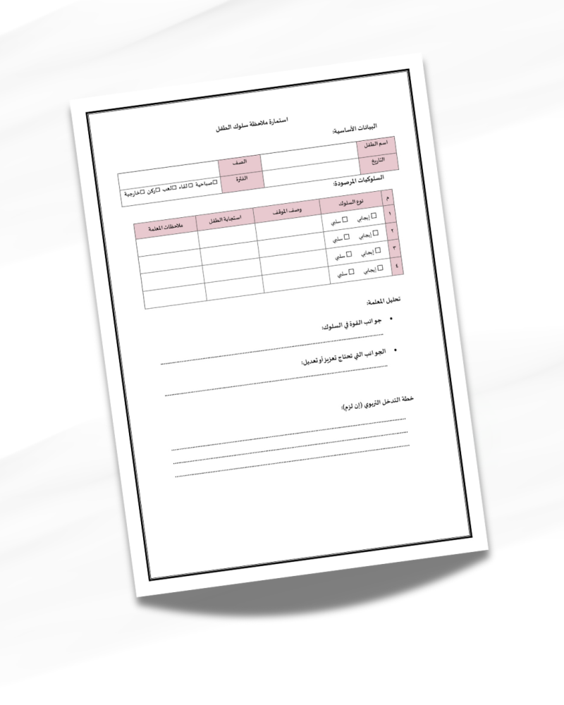 استمارة ملاحظة سلوك الطفل – ملف وورد قابل للتعديل