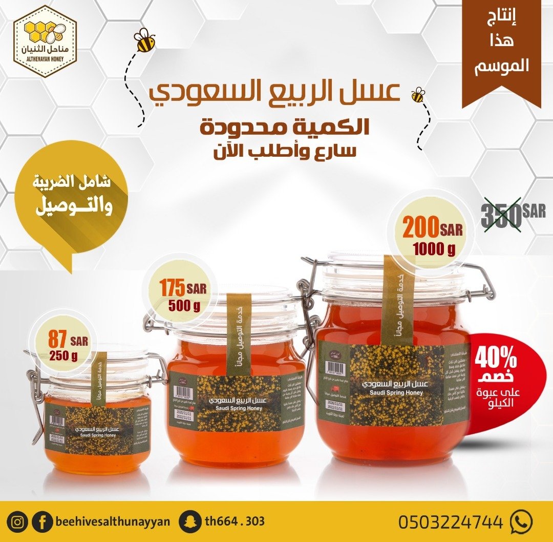 استمتع بفصل الربيع بأكمله في كل قطرة من عسل الربيع السعودي، واختر هذا العسل الفاخر ليكون جزءًا من روتينك اليومي. تمتع بنكهته الرائعة والصحة الطبيعية التي يقدمها.