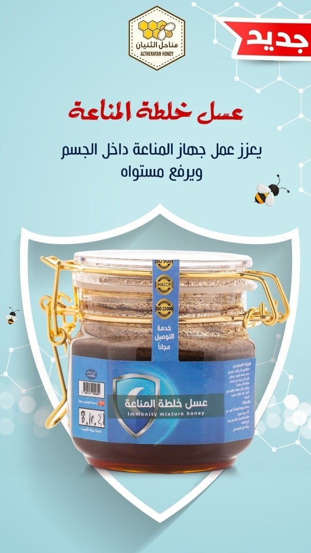 استثمر في صحتك اليوم واختر عسل خلطة المناعة لتجربة فريدة وللمحافظة على قوة جهاز المناعة الخاص بك بشكل طبيعي. اجعلها جزءًا من روتينك اليومي واستعد لاستقبال اليوم بنشاط وحيوية.