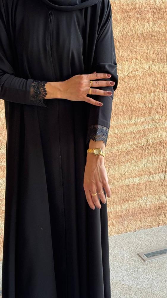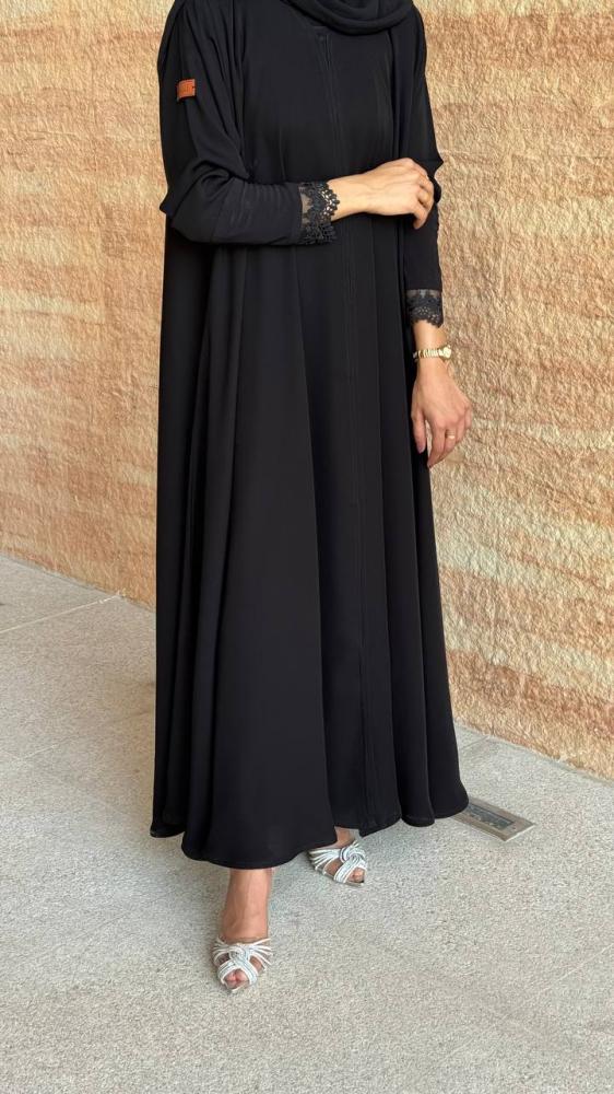 عبايه دبل كلوش قماش انترنت ( كم سترش طرف دانتيل)