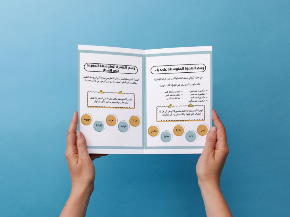 مطوية رسم الهمزة المتوسطة على ياء والمفردة على السطر ثاني متوسط لغتي، عبارة عن صفحتين تنطبع في ورقة واحدة A4 من الأمام والخلف ثم تنطوي من المنتصف ، يتم تسليم الملف فورًا بعد الشراء.