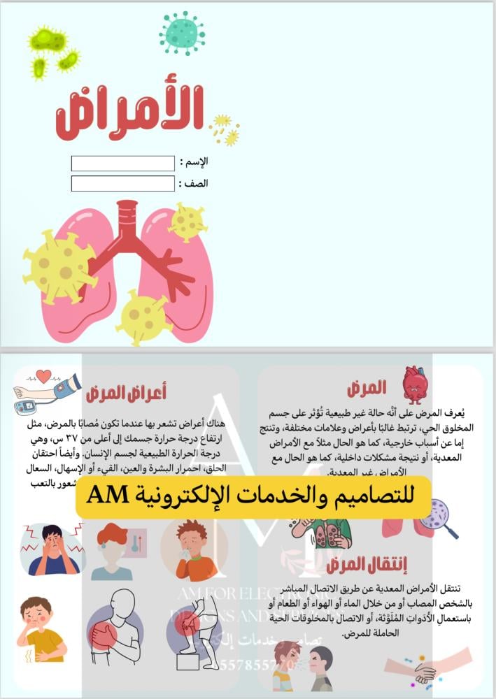 مطوية الأمراض رابع إبتدائي علوم ، عبارة عن صفحتين تنطبع في ورقة واحدة A4 من الأمام والخلف ثم تنطوي من المنتصف ، يتم تسليم الملف فورًا بعد الشراء.