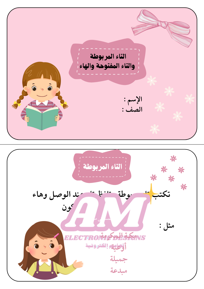 مطوية التاء المفتوحة والتاء المربوطة للبنات