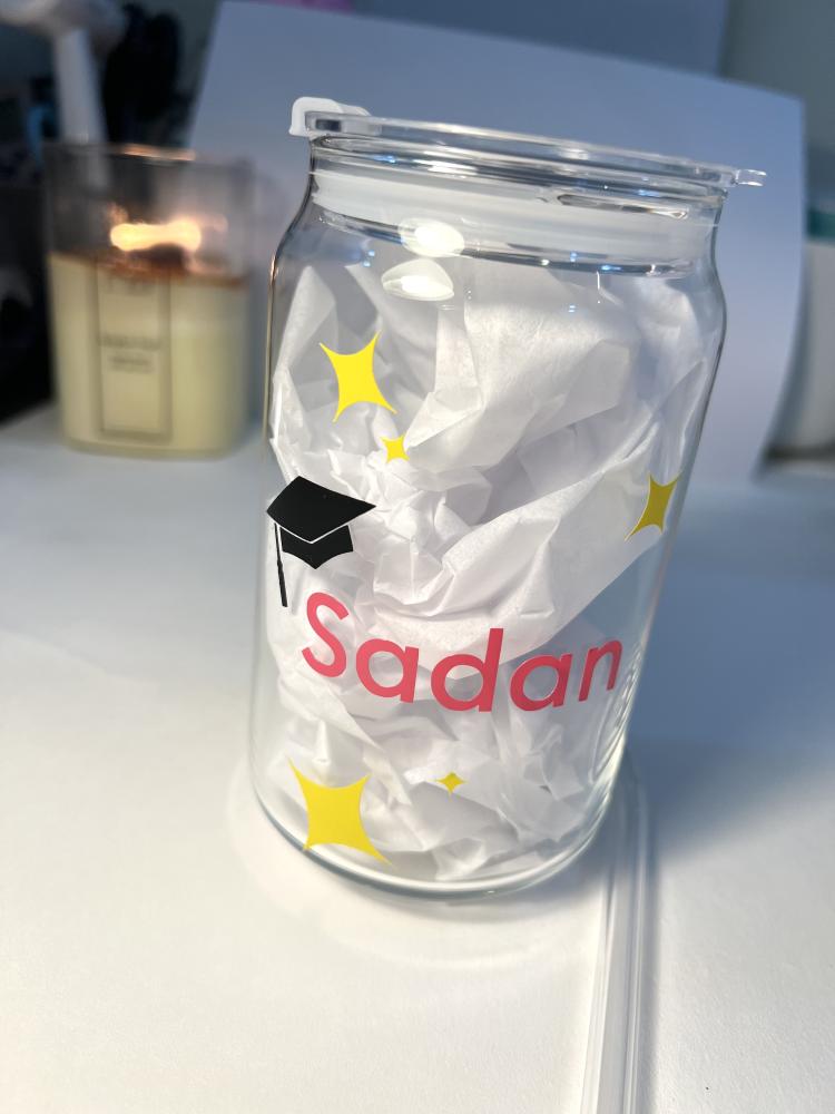 كوب زجاج مع مصاص زجاج مع غطاء خشبي