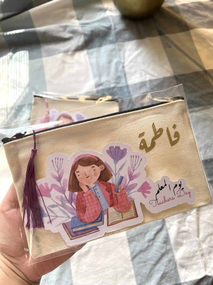 شنطة مع طباعة الاسم باللون الذهبي ( البصمة الذهبية)