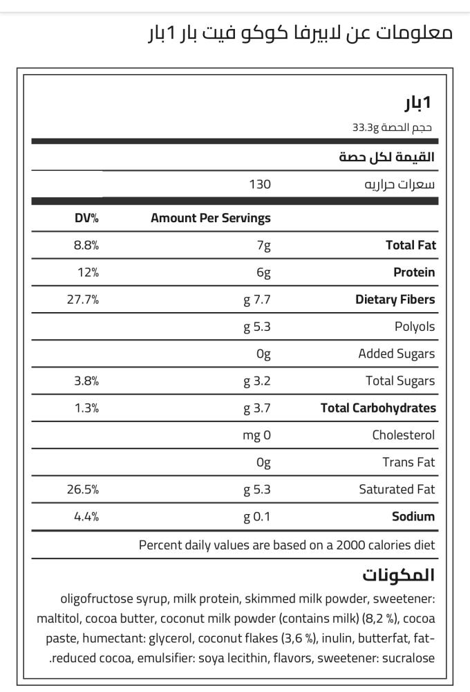لابيرفا كوكو فيت بار, 1بار, 6 جرام من البروتين