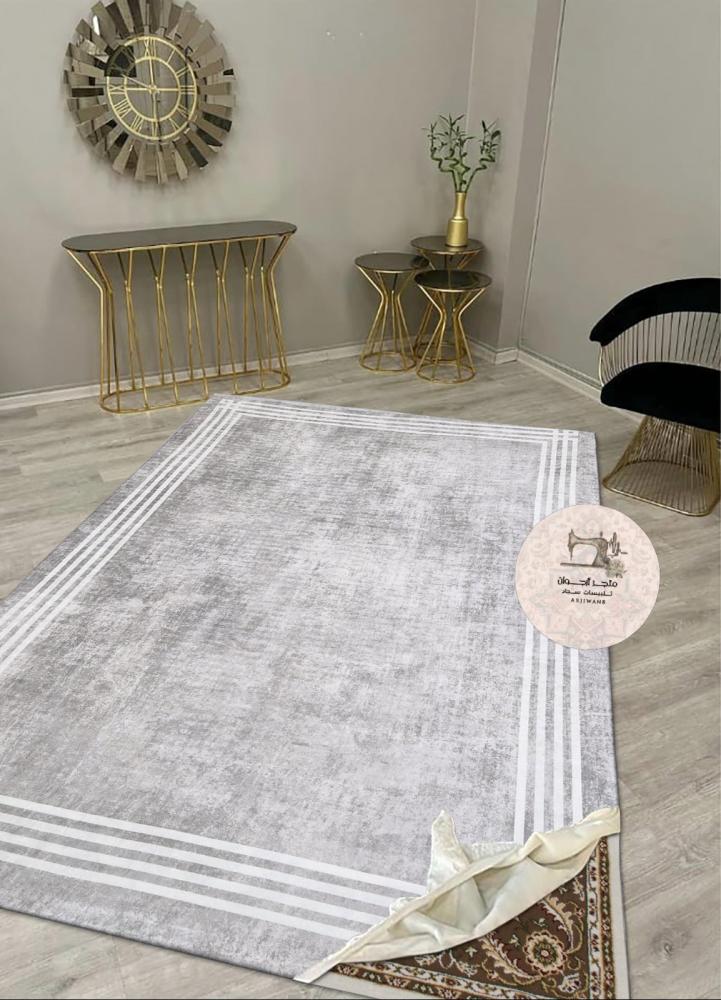 قماش مخمل ناعم، تُفصّل بدقة على مقاس السجادة المطلوب بالضبط بدون زياده او نقصان