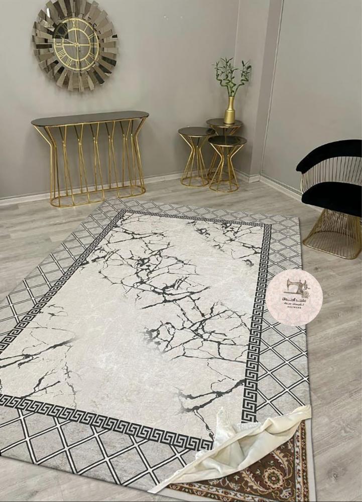 قماش مخمل ناعم، تُفصّل بدقة على مقاس السجادة المطلوب بالضبط بدون زياده او نقصان