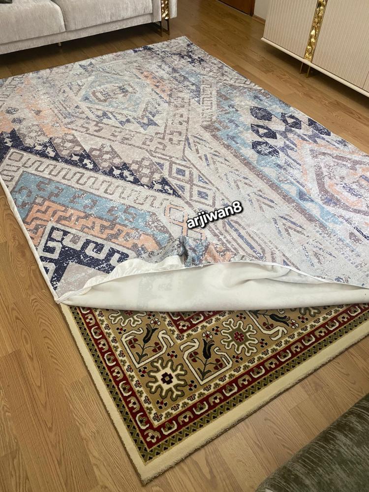 المقاس مكتوب تحت السجاد على استيكر او القياس بالمتر ومن الأفضل أخذ المقاسات بالمتر لضمان الدقة.