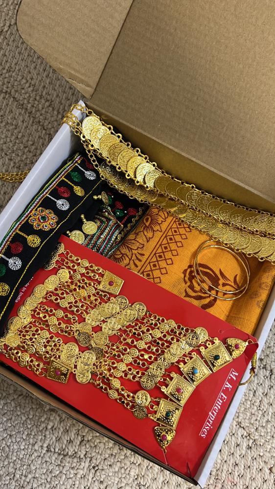 بوكس جنوبي متكامل محتوياته ( ثوب ومنديل عصبه سلسال وحلق بناجر حزام )