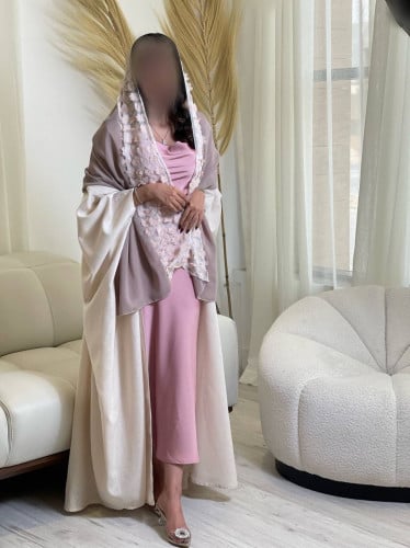 #004 عباية بيبي بينك مع طرحة ورد القماش لينن هندي