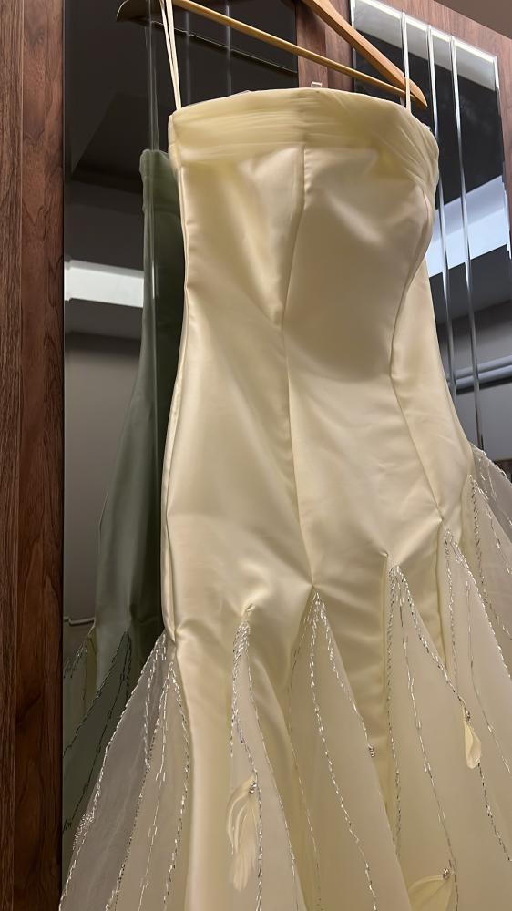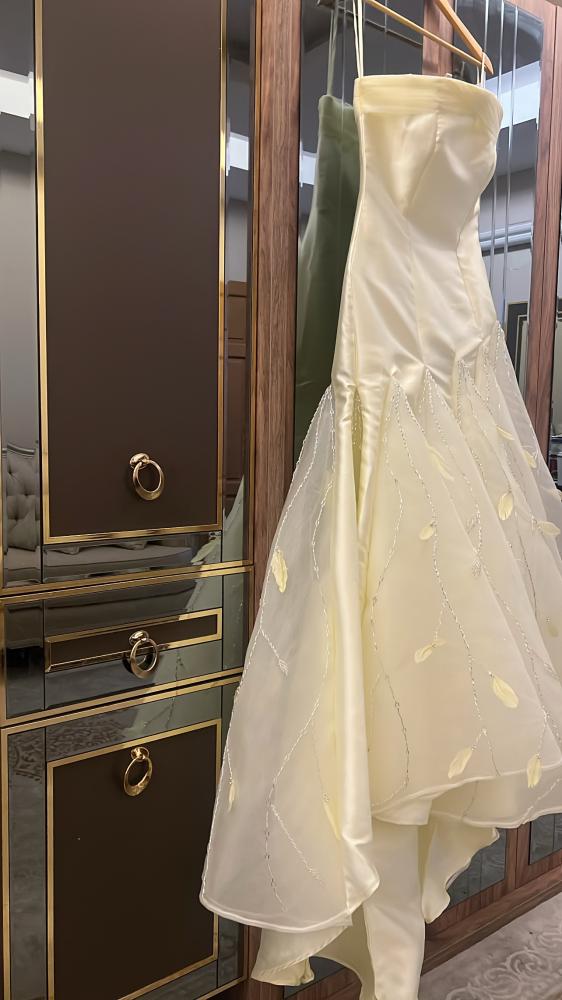 فستان جازرا مطرز بالولو والريش
