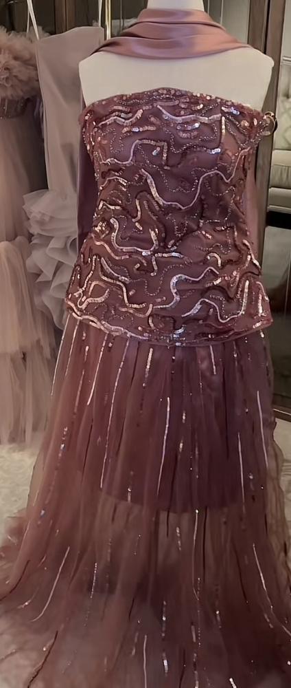 فستان جازرا مطرز بالولو والريش