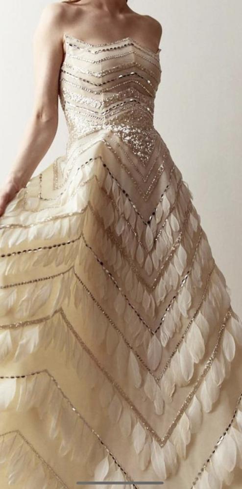 فستان جازرا مطرز بالولو والريش