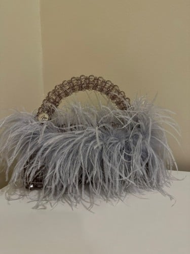 شنطه كريستال مع ريش ( بني )