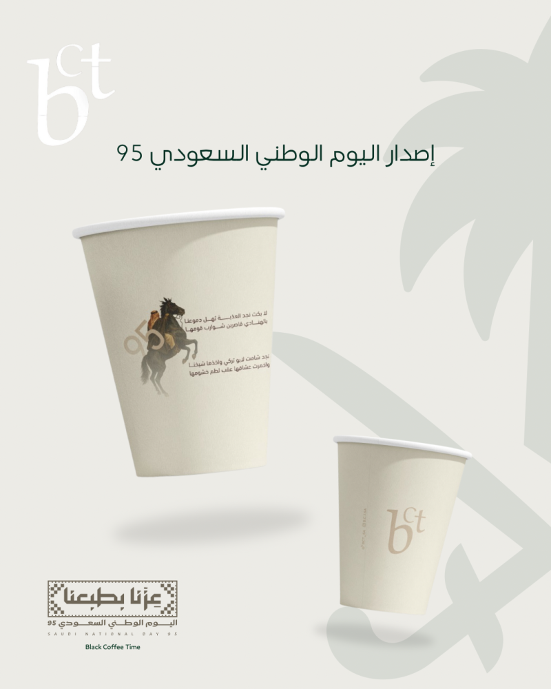أكواب ورقية بشعار Black Coffee Time - إصدار اليوم الوطني السعودي 95