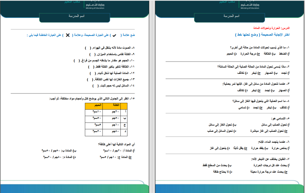 - تنسيق مرتب وسهل الاستخدام للمعلمين والطلاب.