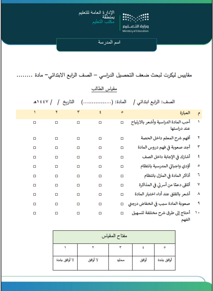 - مبني على استبانة بمقياس ليكرت الخماسي لتشخيص المشكلة بدقة.