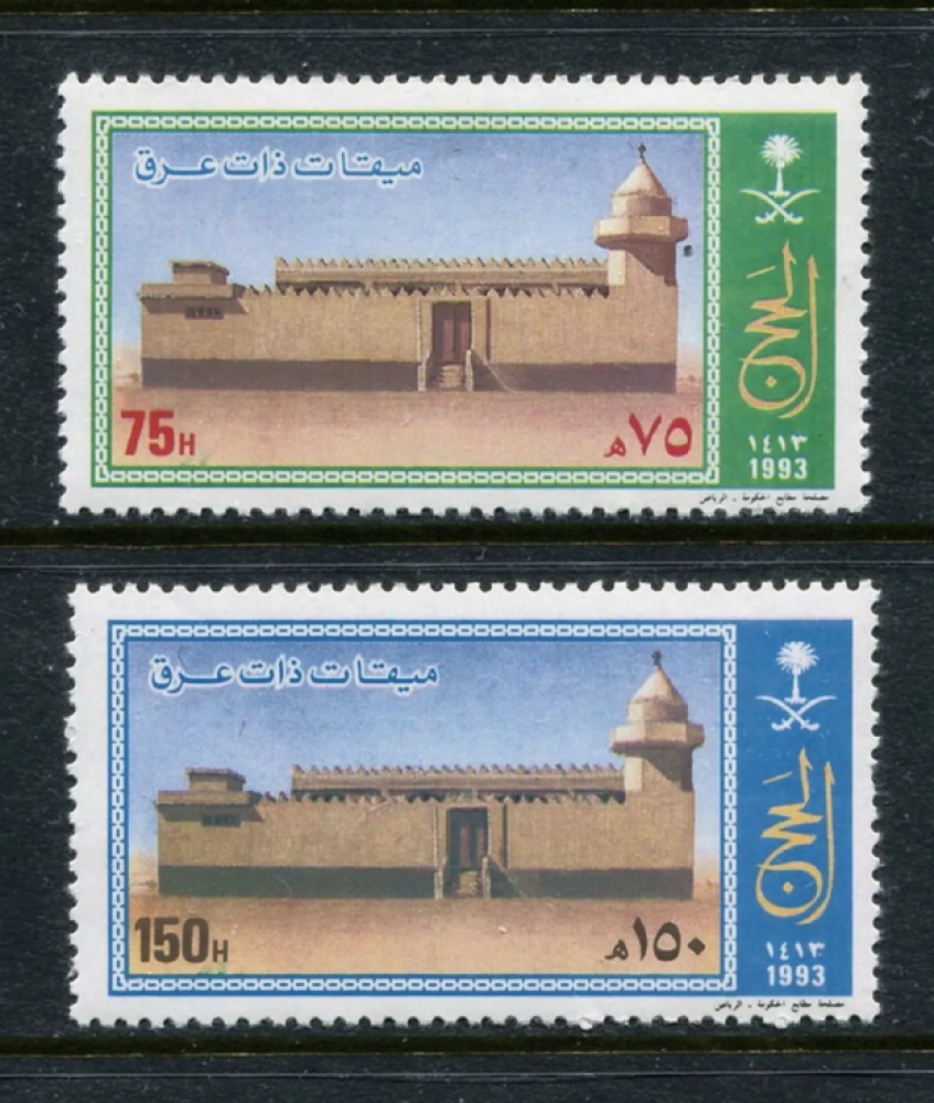 المملكة العربية السعودية🇸🇦🇸🇦🇸🇦❤️🇸🇦🇸🇦🇸🇦 مناسبة الإصدار: موسم الحج (ميقات ذات عرق).نوع الإصدار: تذكاري (إصدار كامل)تاريخ الإصدار: 1413هـ - 1993م.حالة الطابع: منت جديد لم يستخدم.الفئات: 75+150هـالتخريم: 12