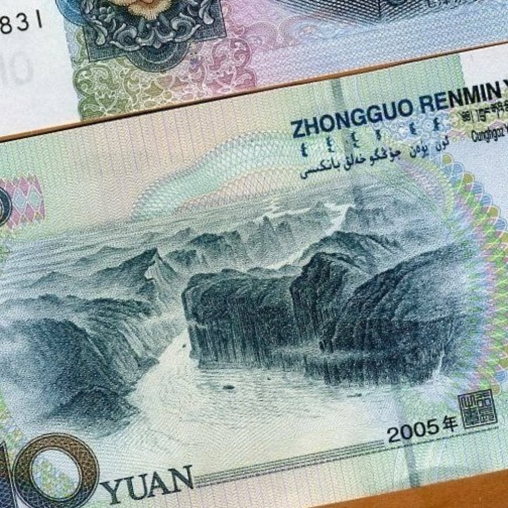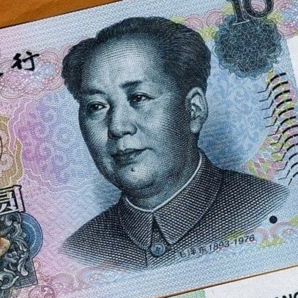 الوجة : صورة لماو تسي تونج، شعار الصين (تيان آن مين ، "بوابة السلام السماوي" ، بوابة المدينة المحرمة ، مع 5 نجوم أعلاه).