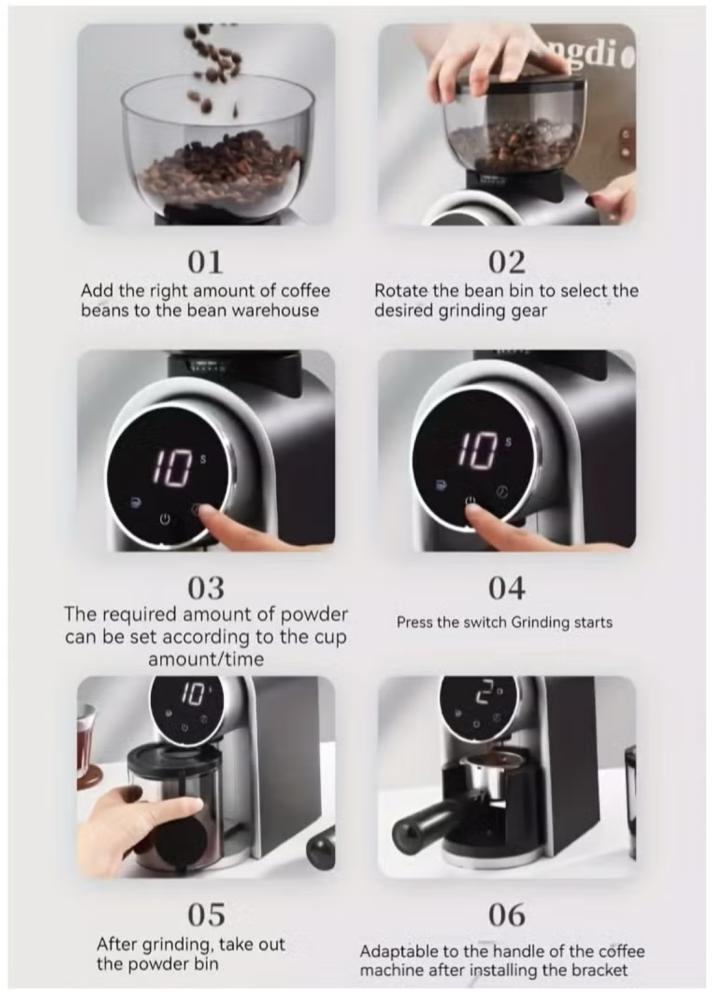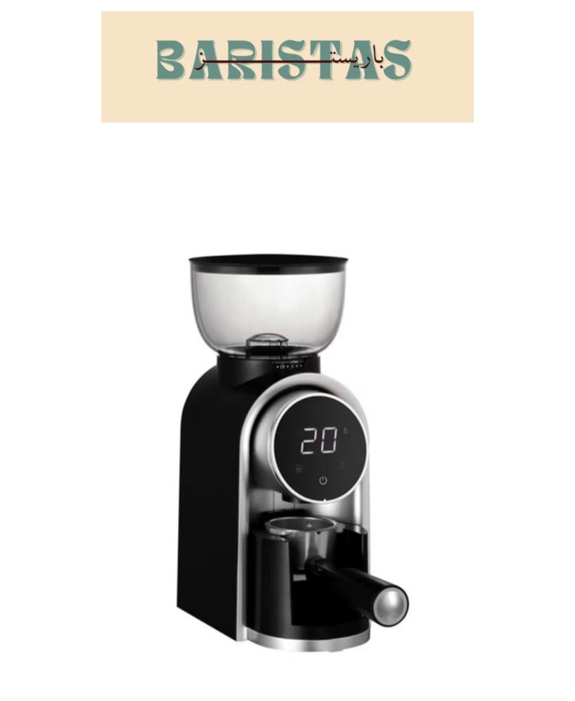 مطحنة حبوب القهوة الكهربائية مع 25 ترسًا للتعديل وشاشة رقمية بقوة 150 وات، لون أسود