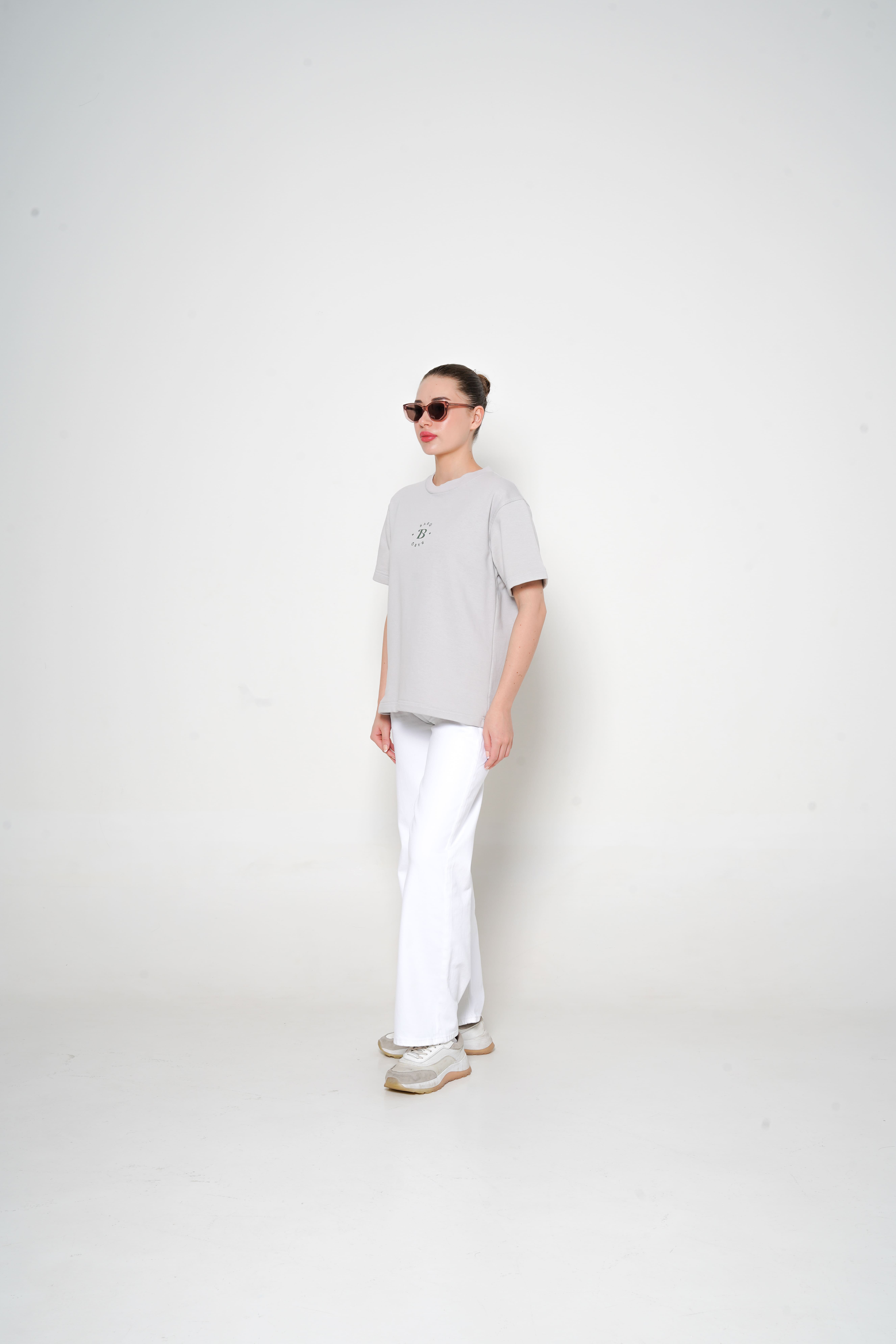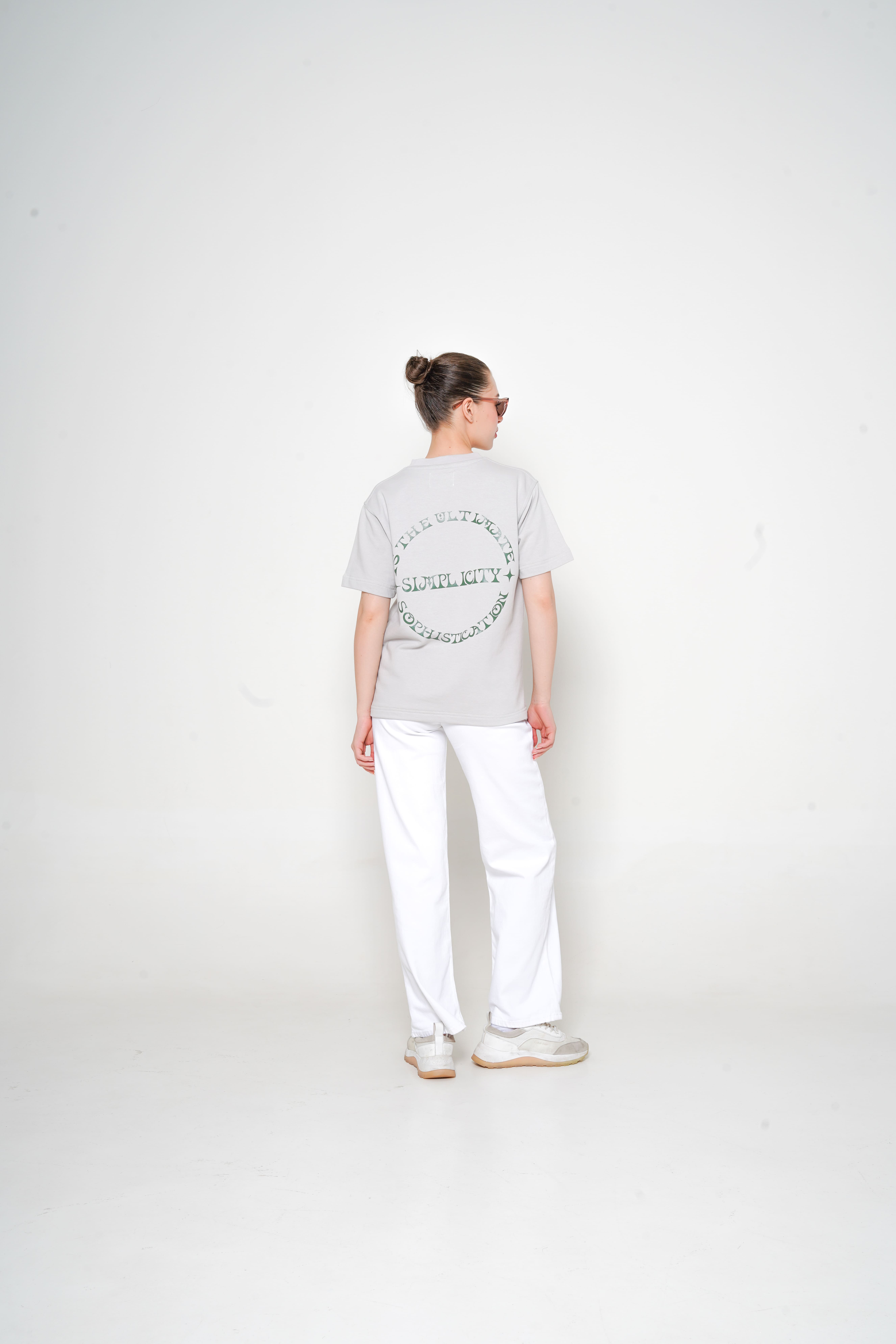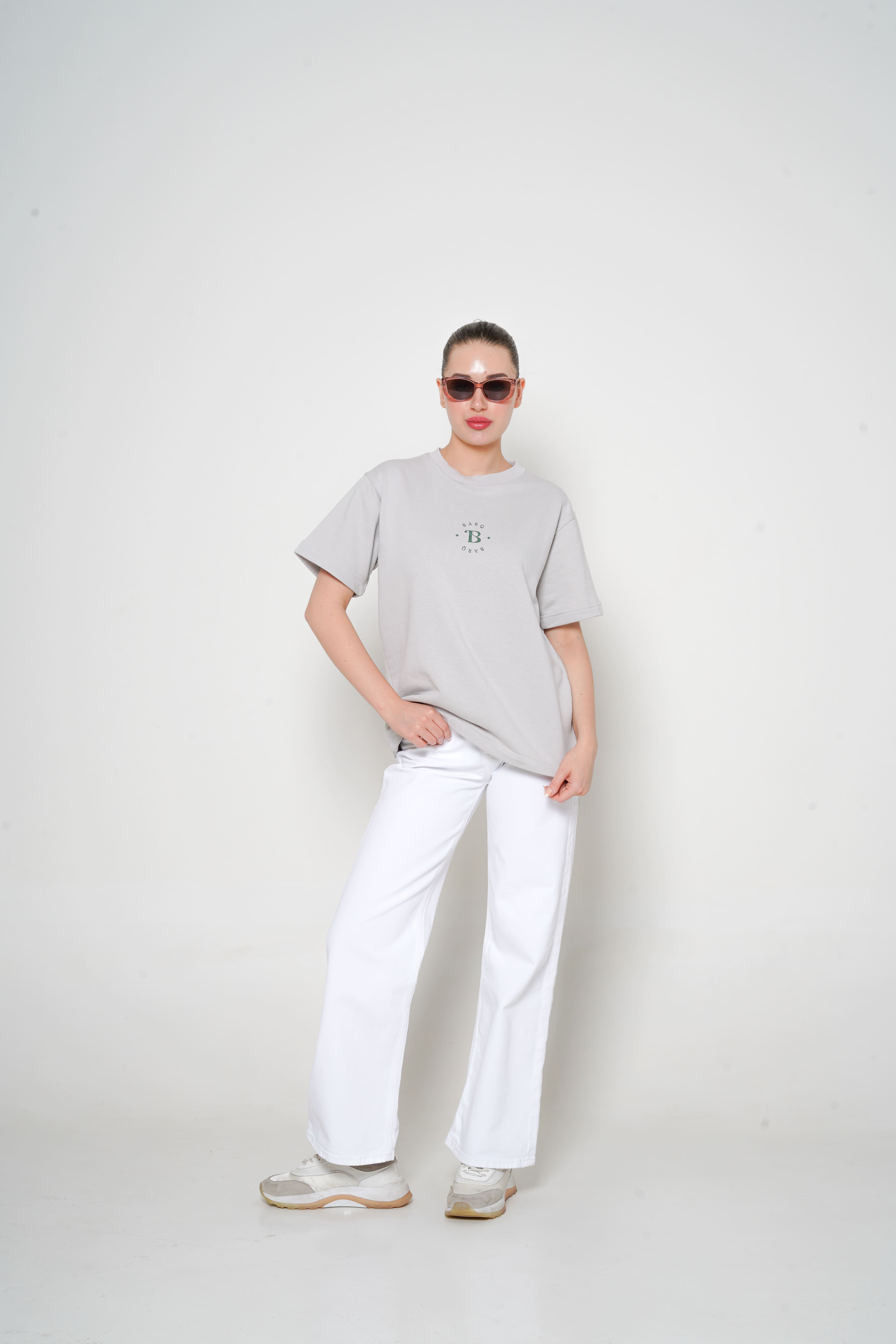 تيشيرت صيفي رمادي فاتح مصنوع من قطن 100٪، بتصميم فضفاض وعصري يوفر راحة وأناقة مثالية للاستخدام اليومي.