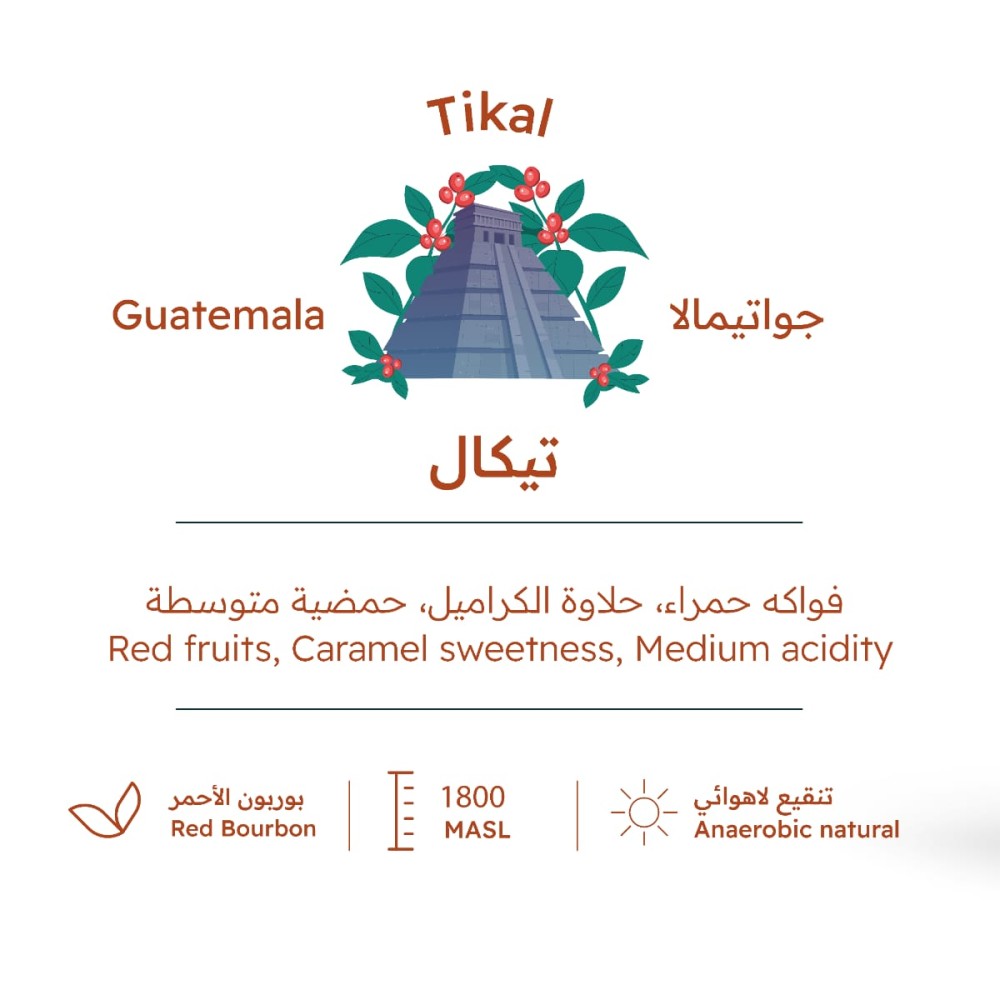 محصول جديد " تيكال " من دولة القهوة المحبوبة غواتيمالا ، مناسبة لمن يبحثون عن قهوة ذات قوام واضح و حمضية لطيفة ويحبون يحضرونها مقطرة او اسبريسو