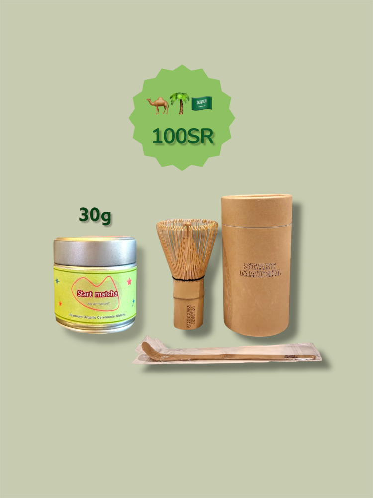 استمتعي بتحضير شاي الماتشا بسهولة ومتعة في كل كوب🌱المجموعة تحتوي على :بودرة الماتشا النقية 30gخفاق الشاي ( chasen)ملعقة الماتشا (chashaku)