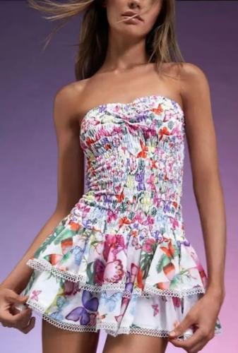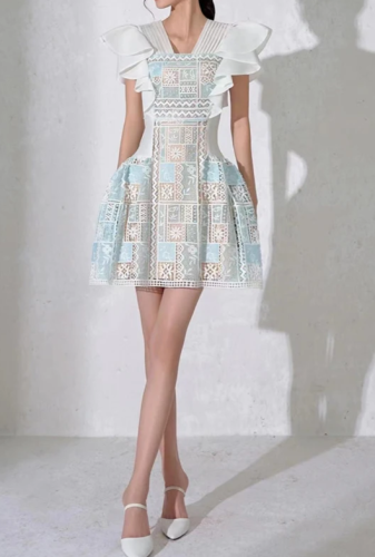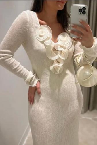 فستان سكري بتطريز زهور