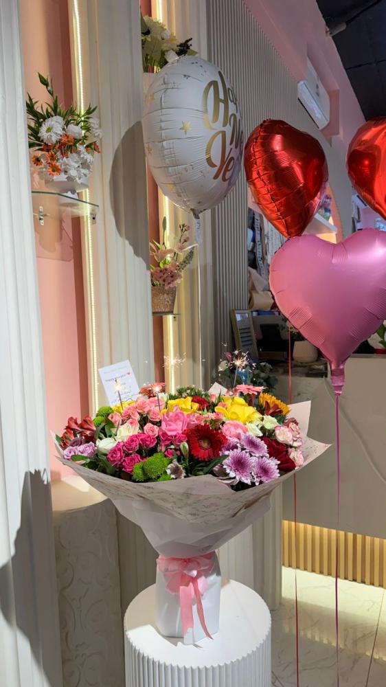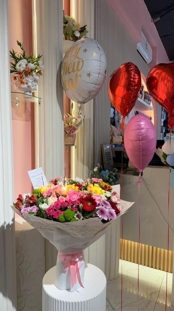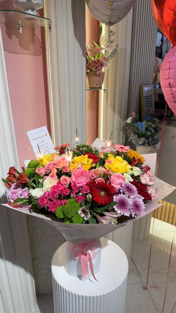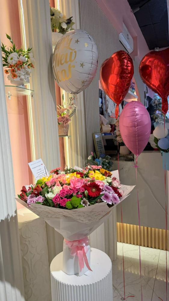 -باقة ورد كبيرة من مختلف انواع الورد الطبيعي