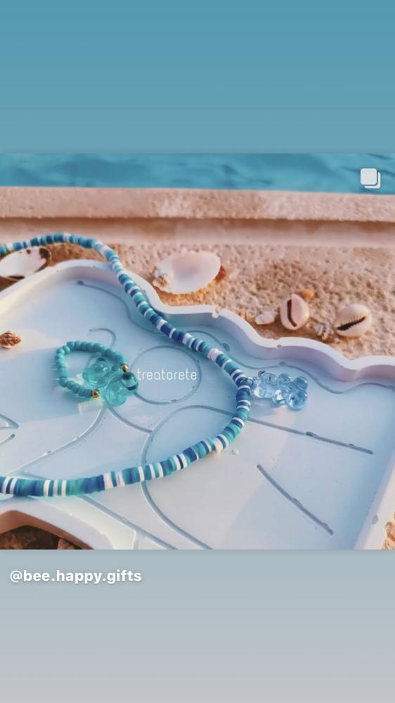 مع طقم عقد و خاتم بقلادة دب 🐻 مصنوع من الريزن