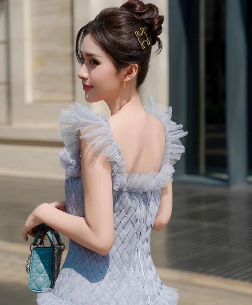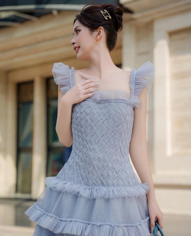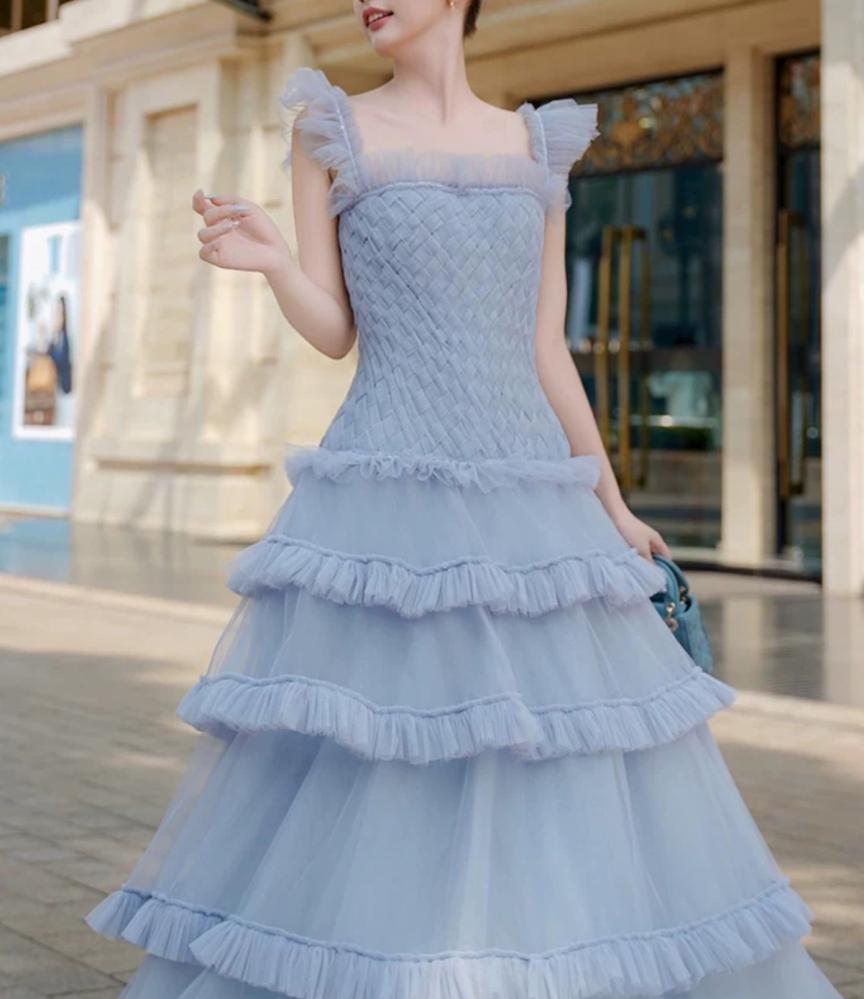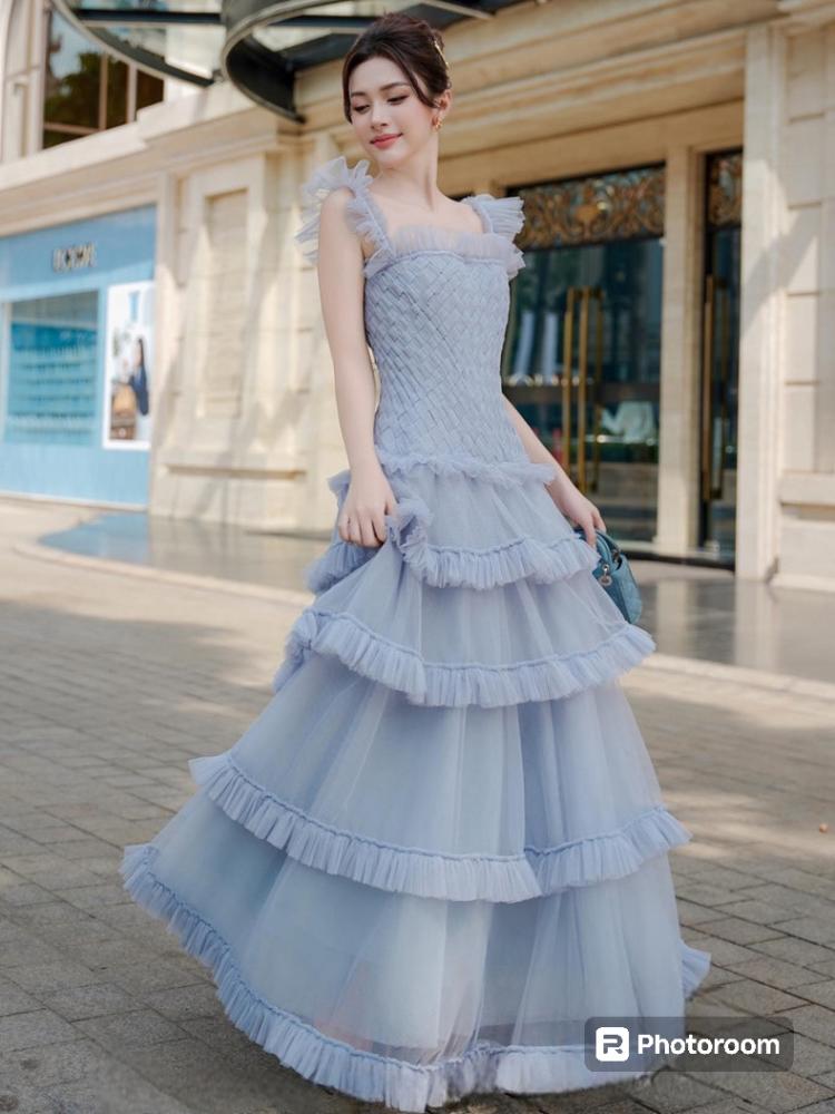 فستان من التل الناعم بقصة كلوش طويل ..