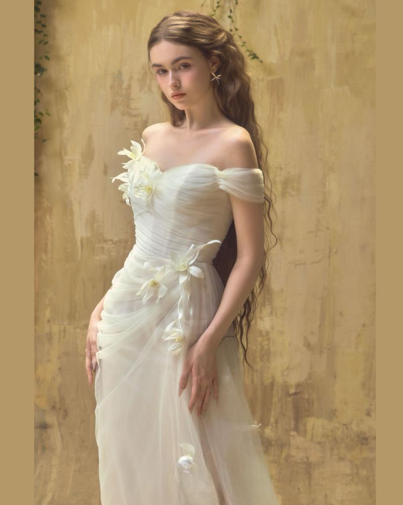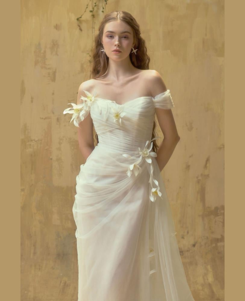 نوع القماش _تول مزين بالزهور .