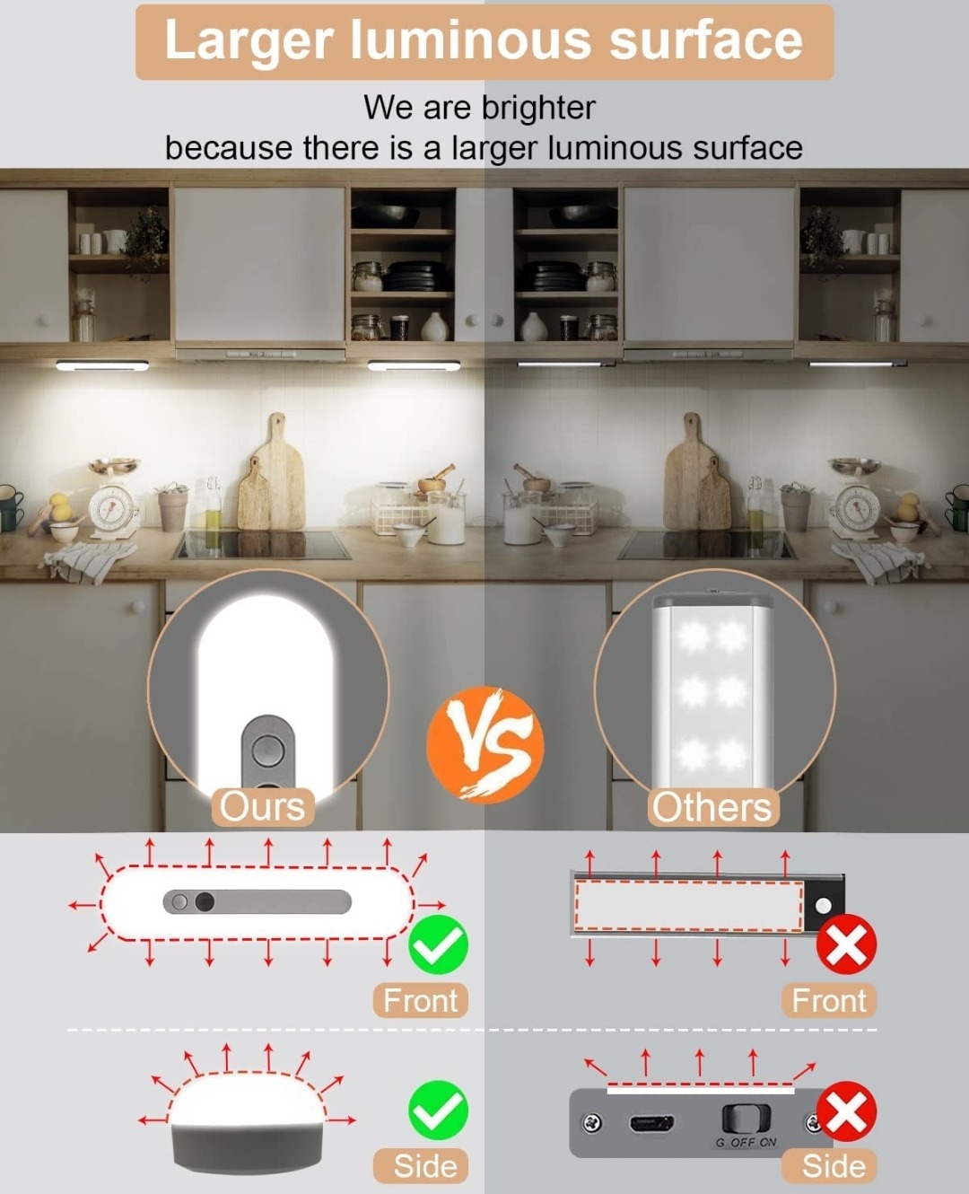32 مصباح خزانة LED مزود بجهاز استشعار حركة، جهاز اضاءة لاسلكية تحت خزانة، اضاءة تعمل بالبطارية، قابل لاعادة الشحن عن طريق USB، ضوء خافت، ضوء ليلي مغناطيسي للمطبخ والرواق والخزانة (18 سم، ضوء ابيض)