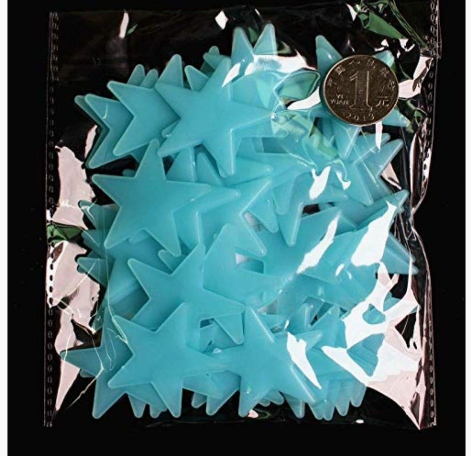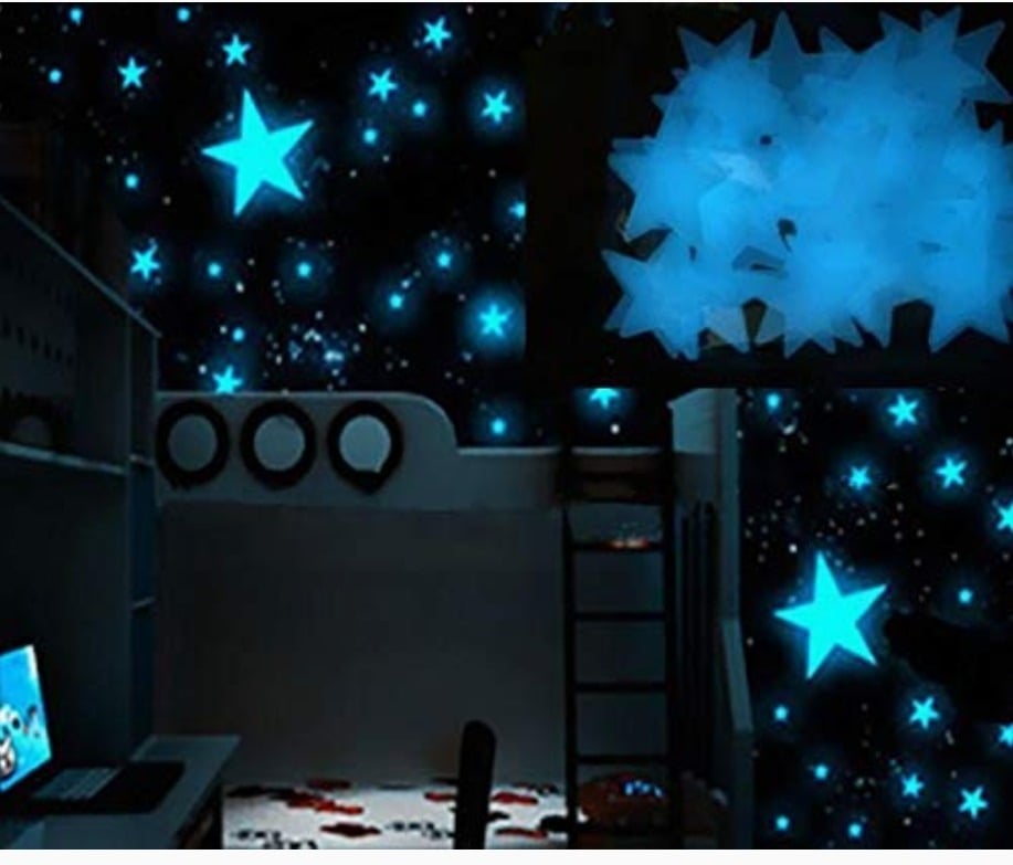 100 قطعة من ملصقات الحائط بتصميم النجوم الزرقاء المضيئة في الظلام لتزيين غرفة المعيشة في المنزل