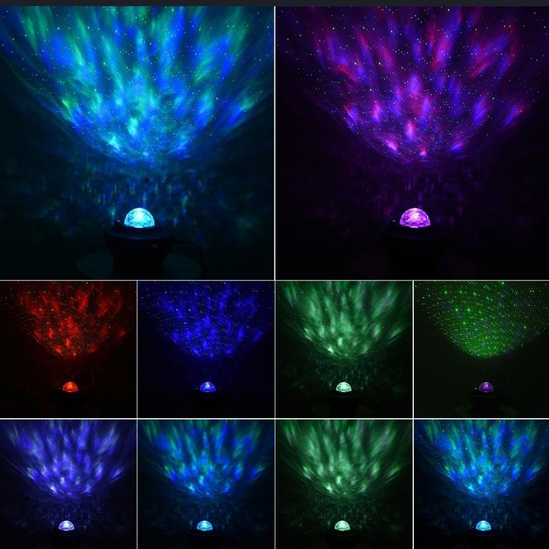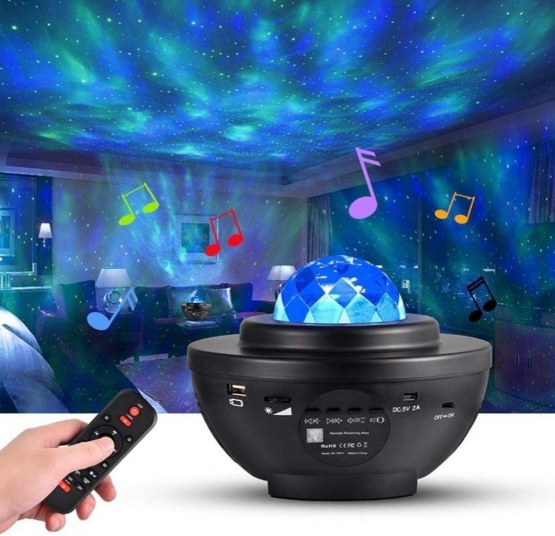 تحتوي على أكثر من 5 أوضاع منوعة: -غرفة الألعاب. -اضاءة ليلية. -اضاءة للاسترخاء. -اضاءة النجوم. اضاءة ليزر. امكانية الربط من خلال البلوتوث. التحكم من خلال الريموت. منفذ USB لتشغيل المقاطع الصوتية.* *ملاحظة: (درجة الصوت متوسطة وليست عالية).