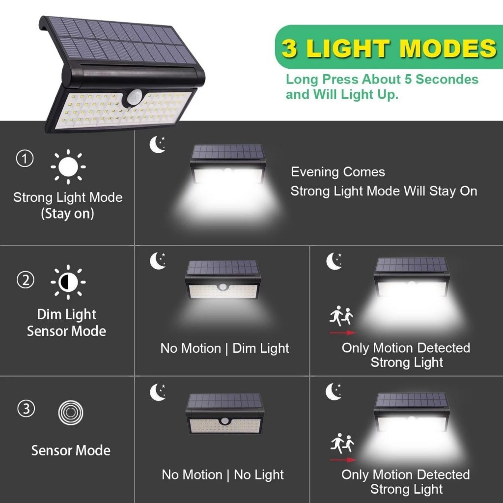 اضاءة جداريه كبير تعمل بالطاقة الشمسية 132 LED