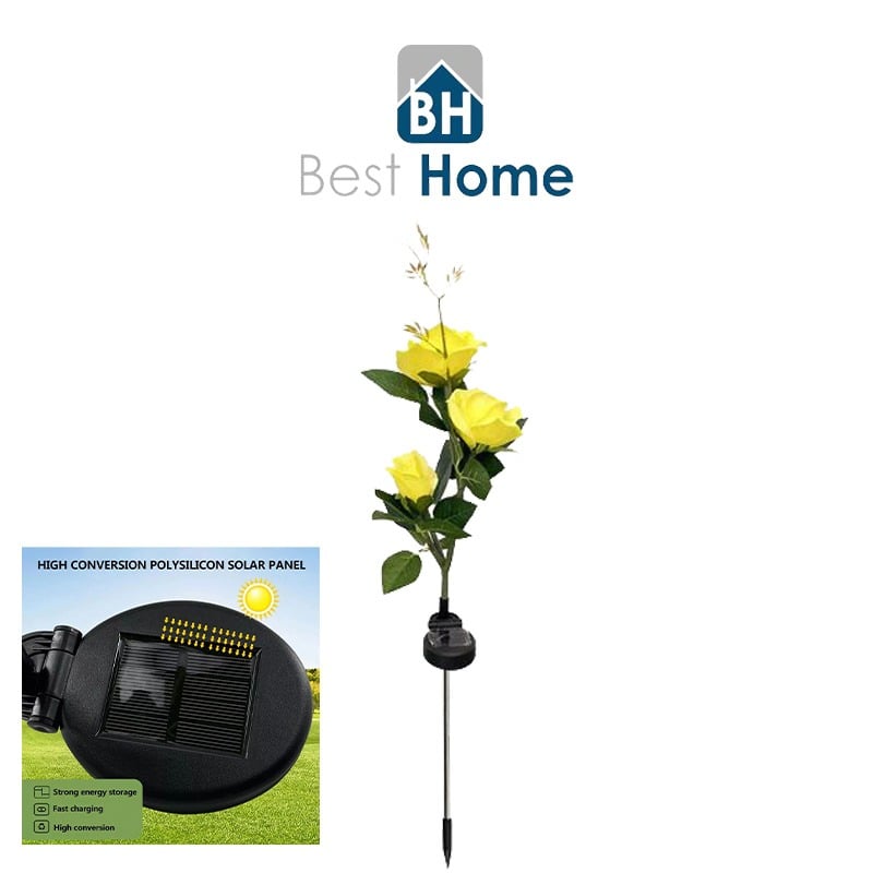 نبته بثلاث زهور مضيئة زينة الحديقة تعمل بالطاقة الشمسية - لون أصفر