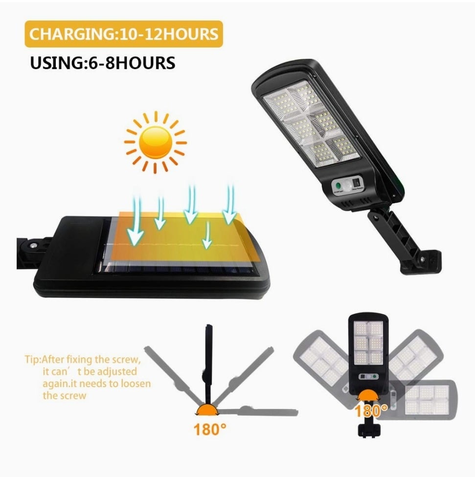 - استشعار راداري بنطاق 10 -20 قدم، يقوم بالإضاءة التلقائية عند وجود شخص ما وإطفاء الضوء عند مغادرة الأشخاص وعدم الحاجة للعمل، استجابة ذكية لتغيرات الطقس. بطارية ليثيوم مدمجة عالية السعة.