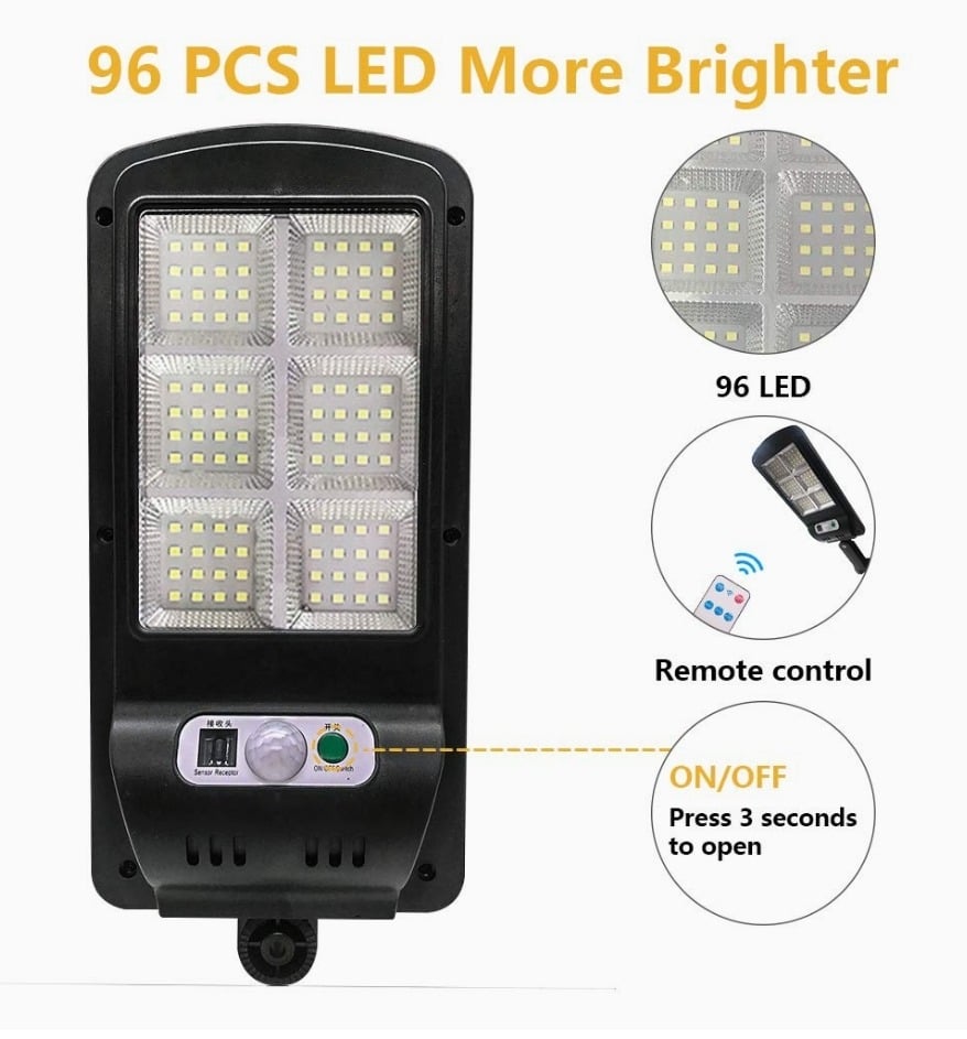 اضاءة شارع بالطاقة الشمسية 96 ليد لمواقف السيارات بنظام التحكم عن بعد لحفظ الامن واستشعار الحركة الخفيفة مع 3 وسائل اضاءة لطريق الفناء