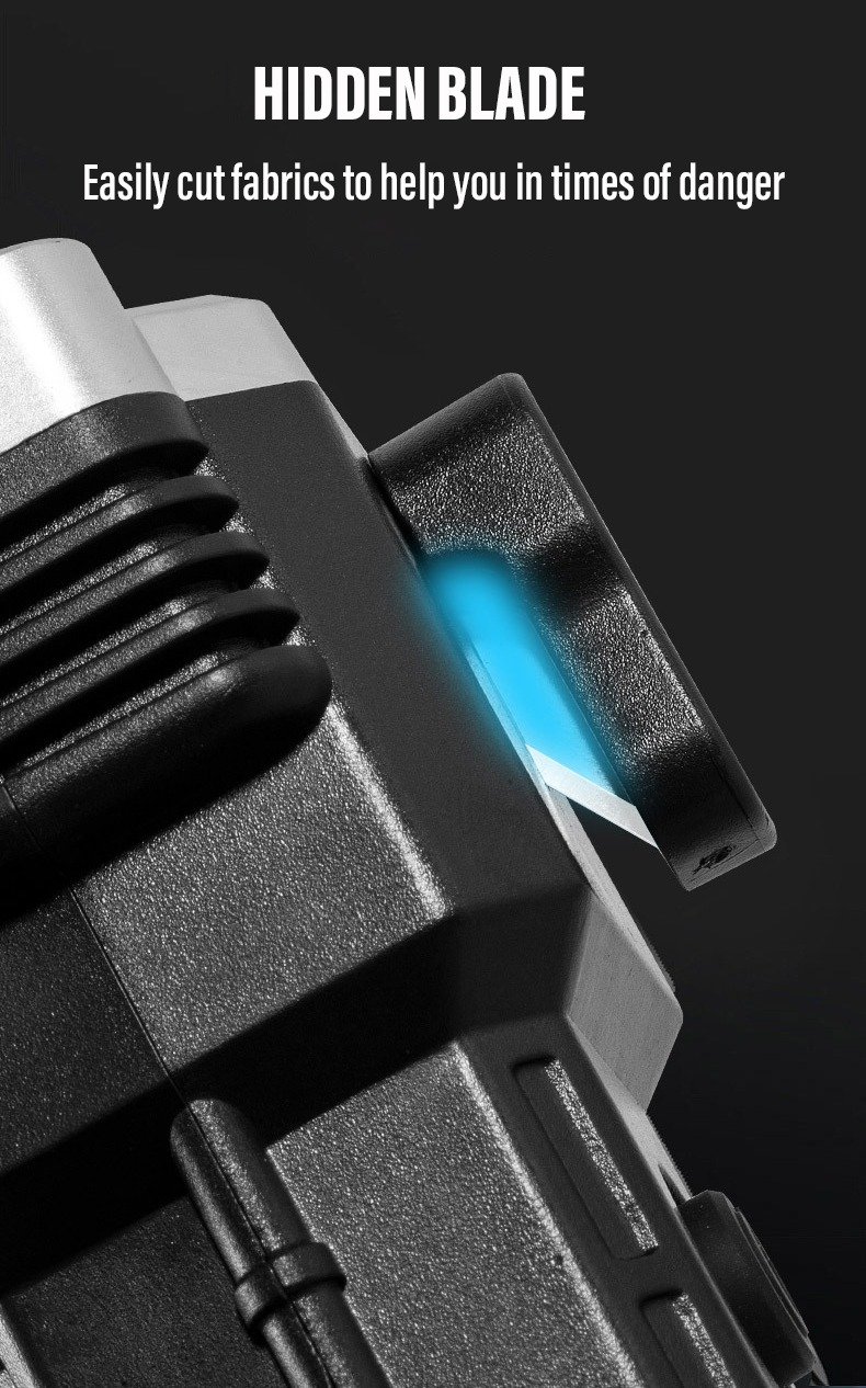 مصباح LED يدوي متنقل USB قابلة للشحن مع مطرقة لكسر الزجاج وشفرة لقطع حزام الامان اثناء الحوادث لاسمح الله - لون فضي