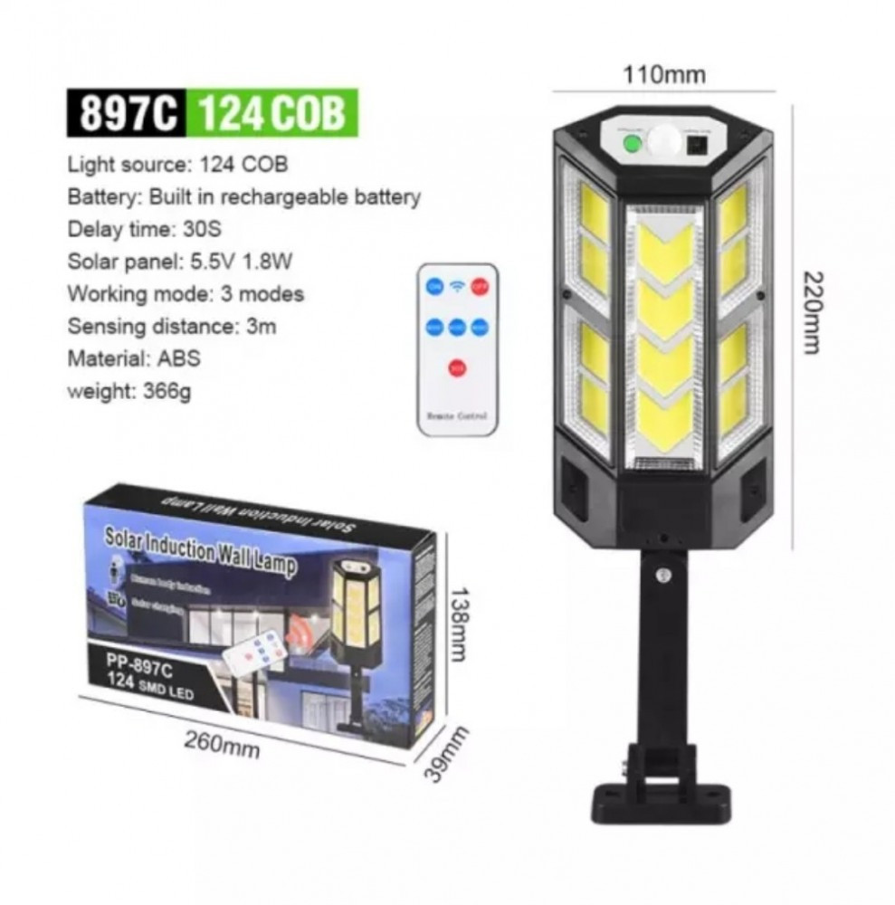 كشاف شارع يعمل بالطاقة الشمسية مستشعر للحركة تحكم عن بعد