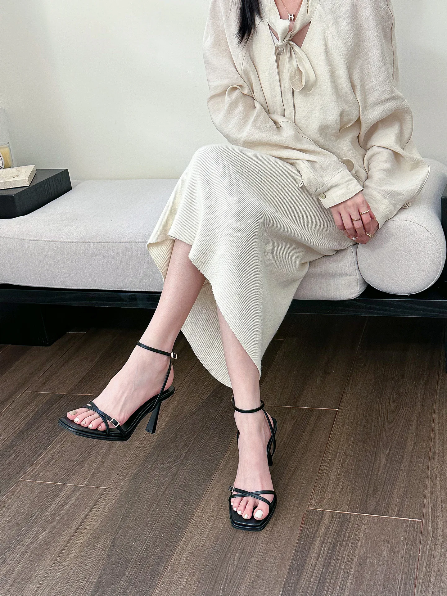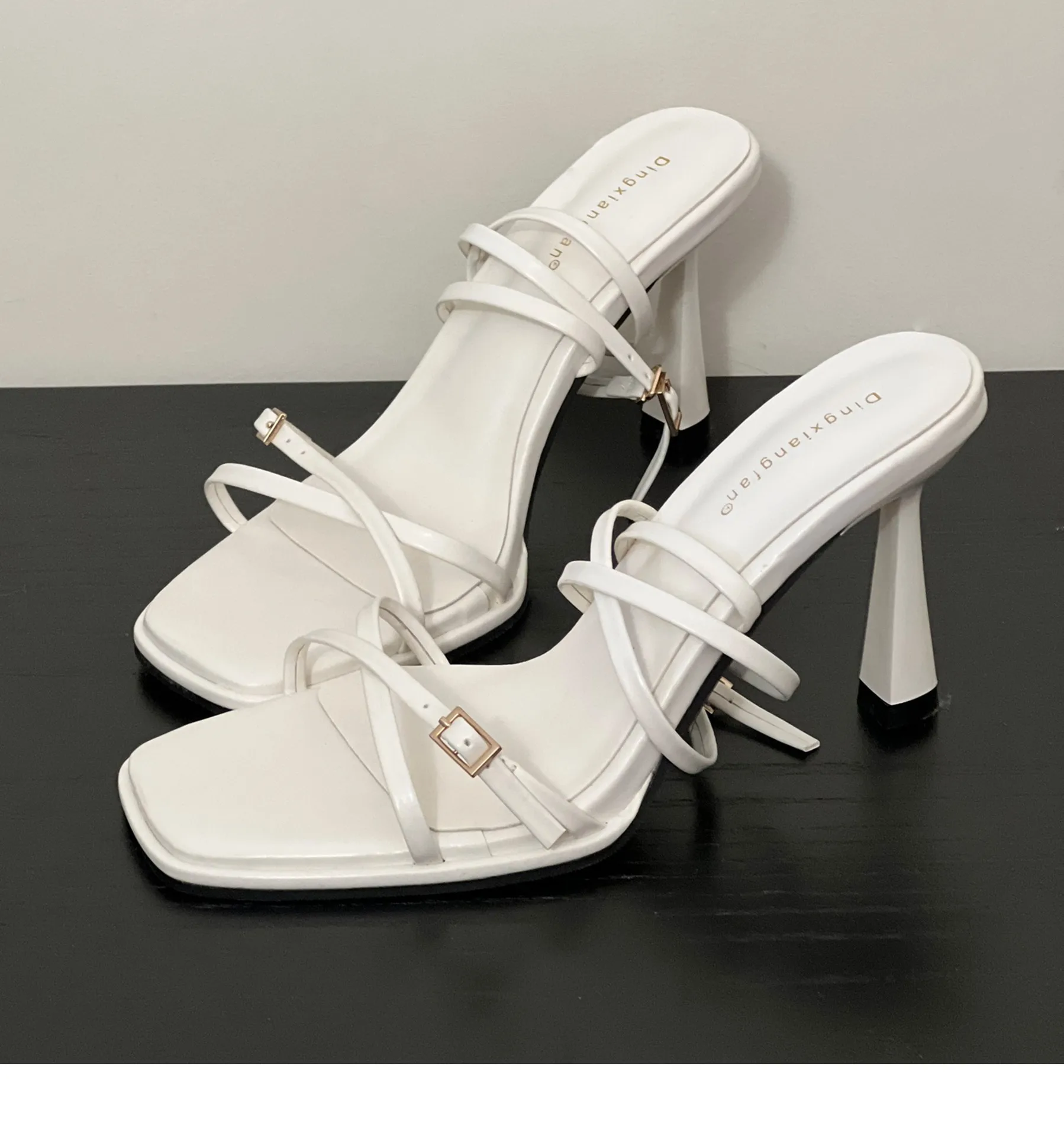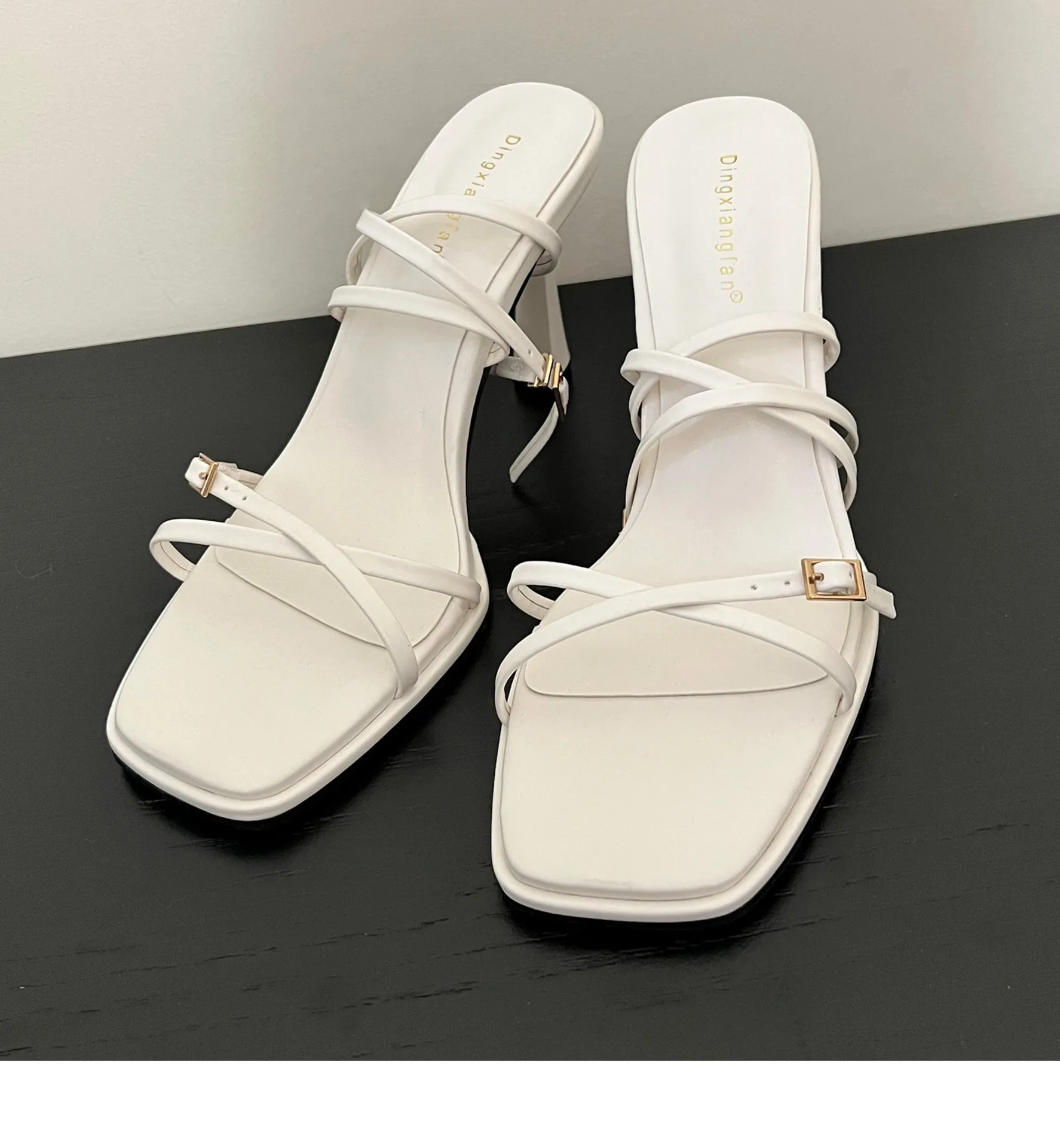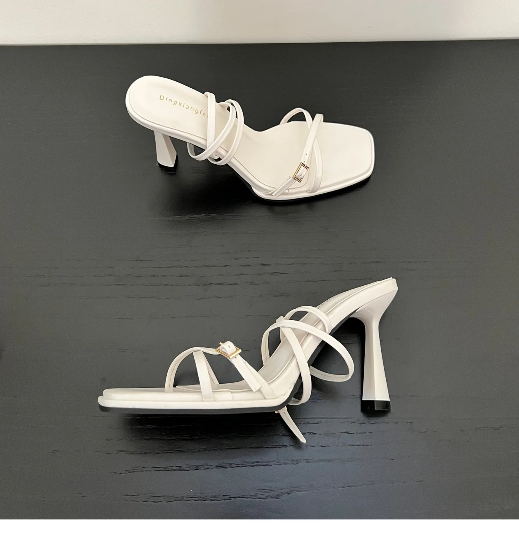 صنادل عالية الكعب قابلة للتنفس عند الكاحل ، أحذية حفلات مثيرة للسيدات ، حزام متقاطع أمامي ، مقدمة مفتوحة ، مقدمة مربعة
