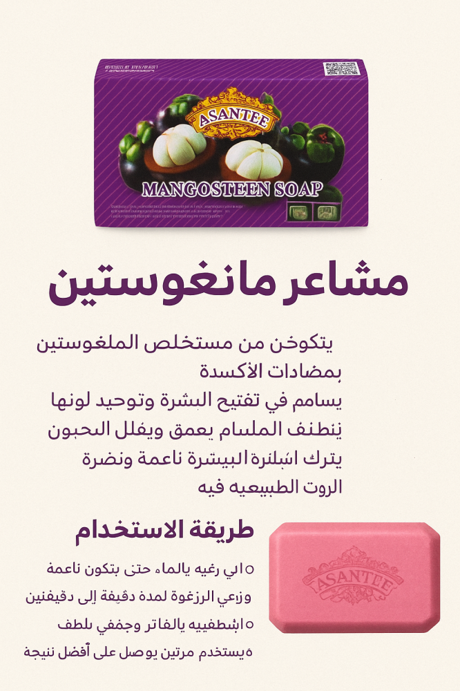 هذه صابون Asantee Mangosteen Soap (صابون المانغوستين التايلندي)، وهو من منتجات العناية بالبشرة المشهورة في تايلند.