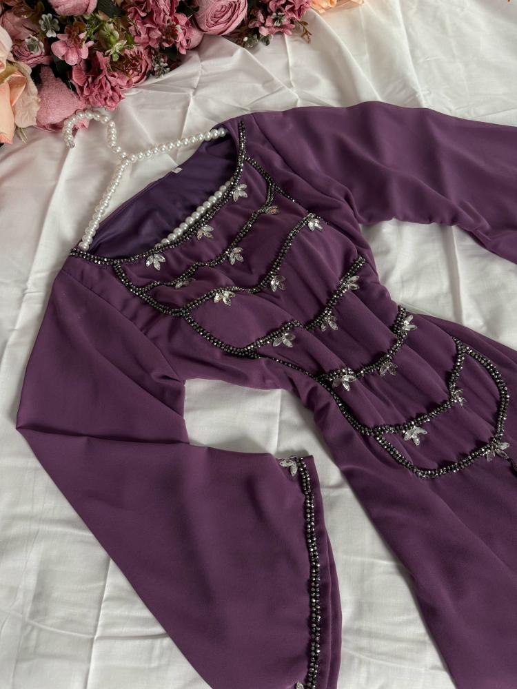 الخامة/شيفون ناعم مبطن & تطريز لمعه صدر كامل تطريز & تطريز كم