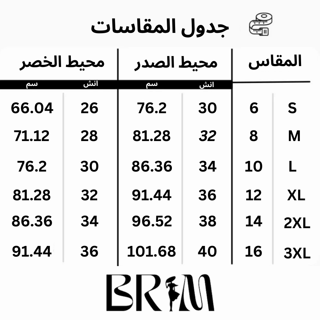 راجعي جدول المقاسات قبل اختيار المقاس*