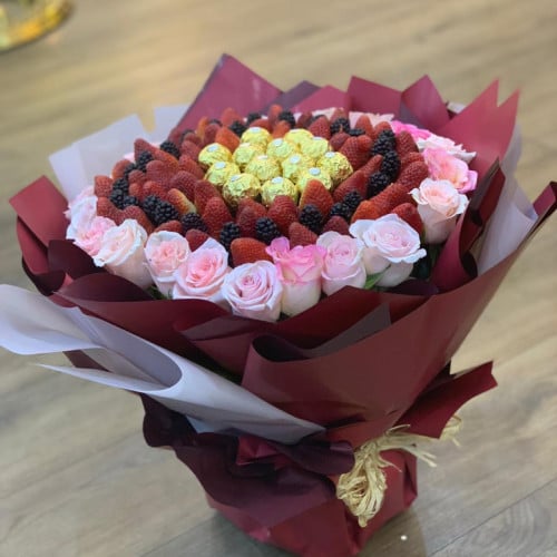باقة فواكه ورد وشوكولاته