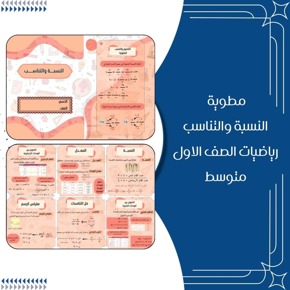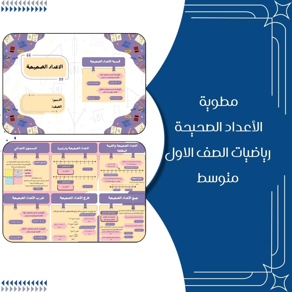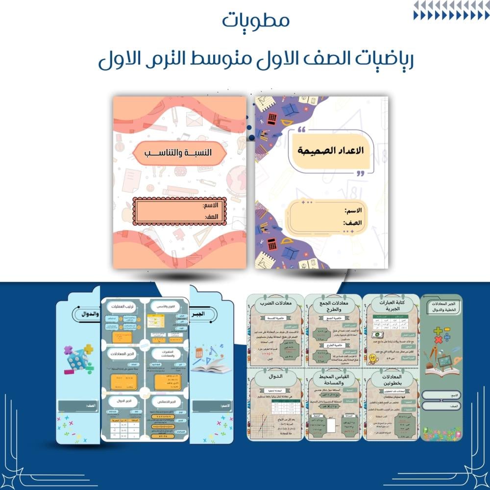 مطويات رياضيات الصف الاول متوسط الترم الاول