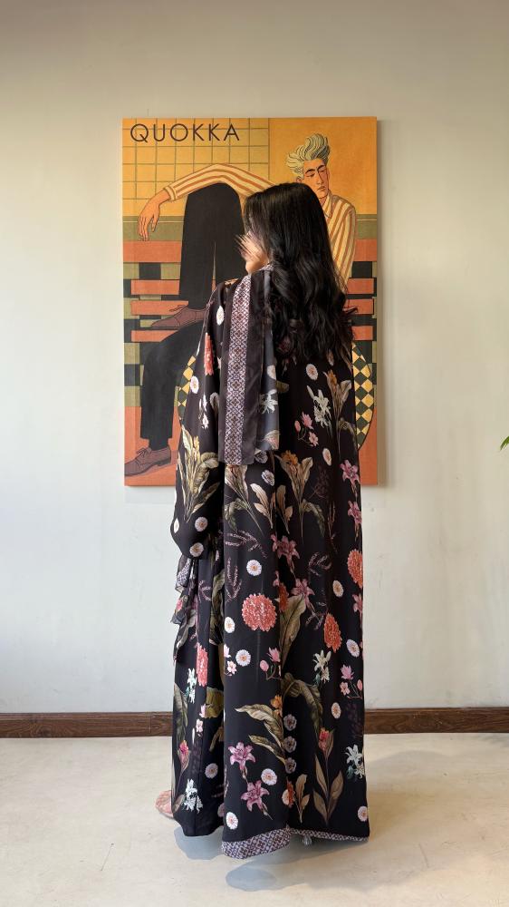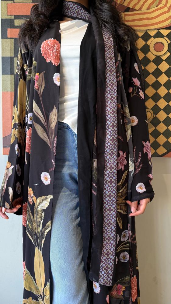 عباية شيفون مورد ومبطنه بشيفون اسود نص كلوش 🌻🧡