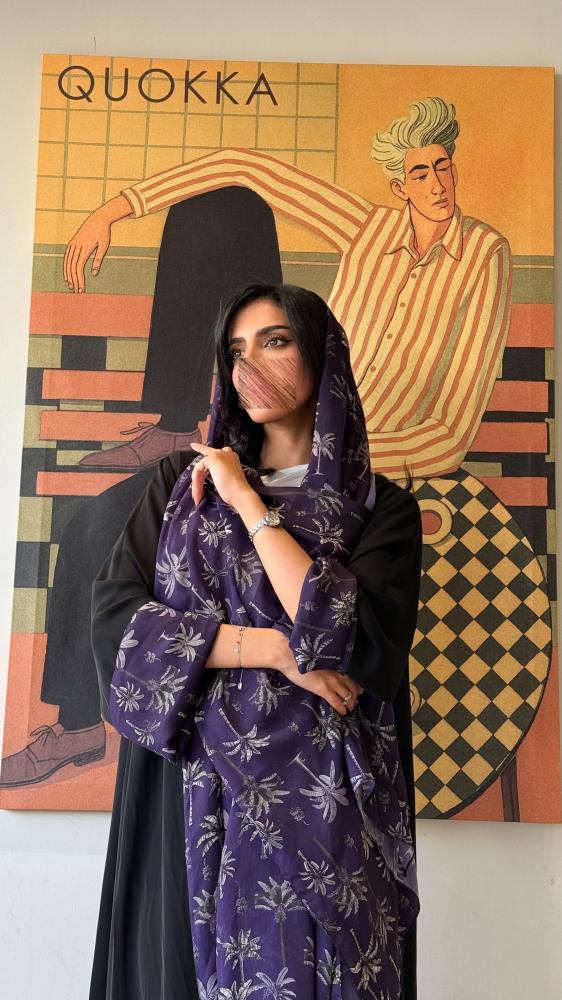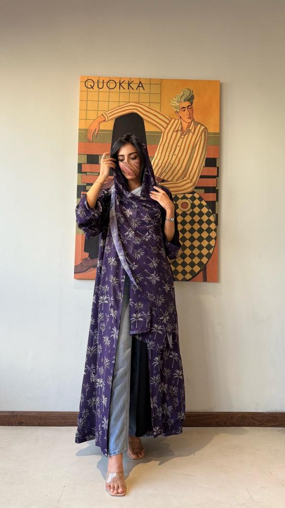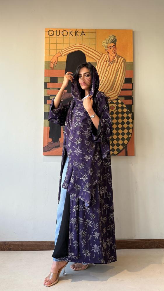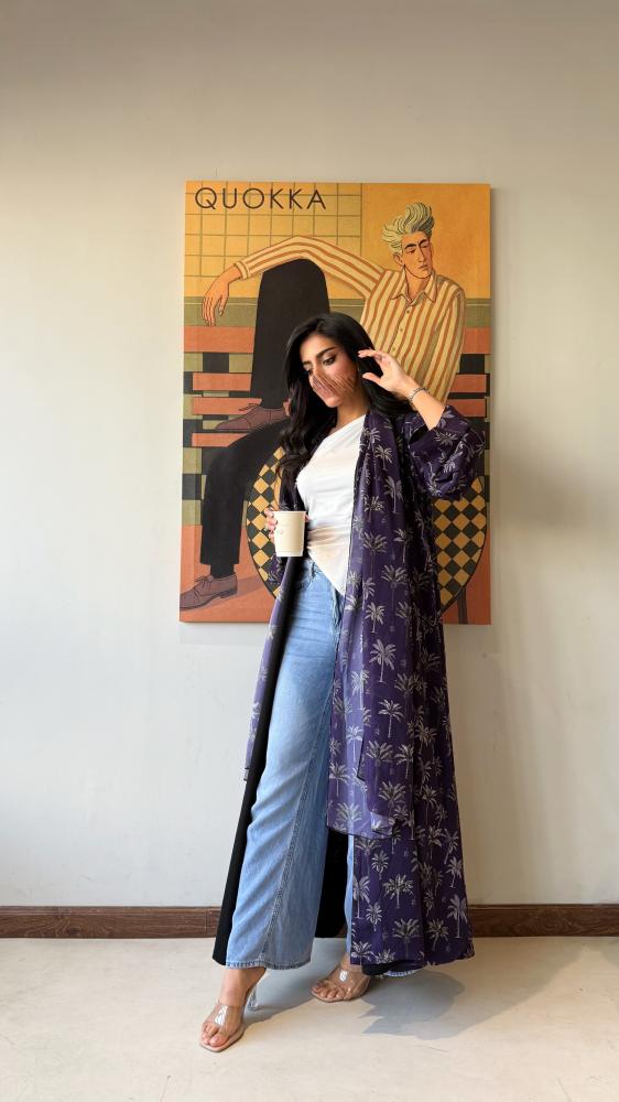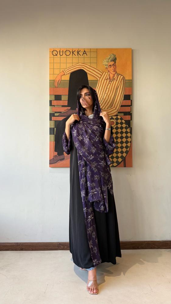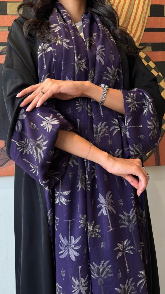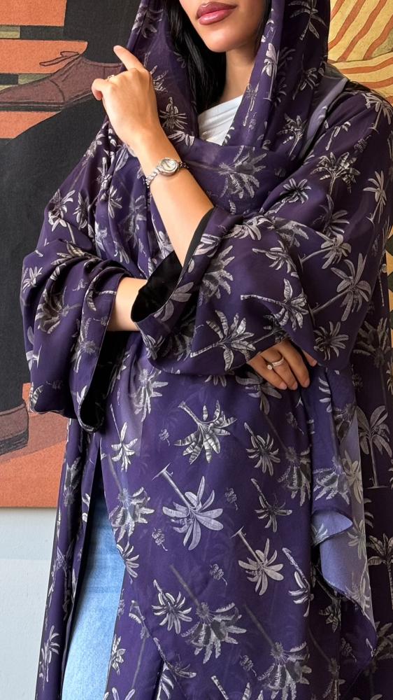 عبايه دبل فيس كريب بنفسجي بطباعة نخلات وقماش اسود بلاك بيري🌴💜 ..